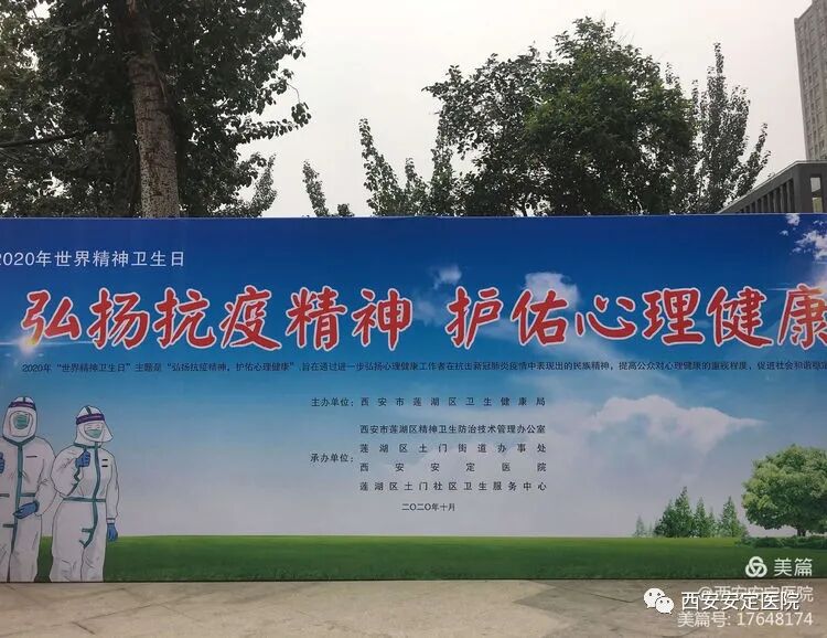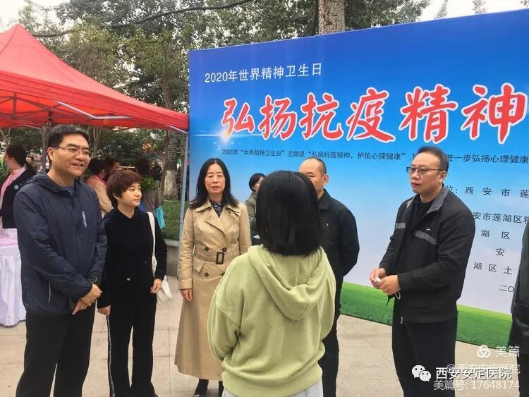10月10日是第29个世界精神卫生日。由莲湖区卫生健康局主办,区精防办、土门街道办事处、西安安定医院、土门社区卫生服务中心承办,组织莲湖区十个社区卫生服务中心集中在土门辖区小树林广场举行大型义诊宣传活动。